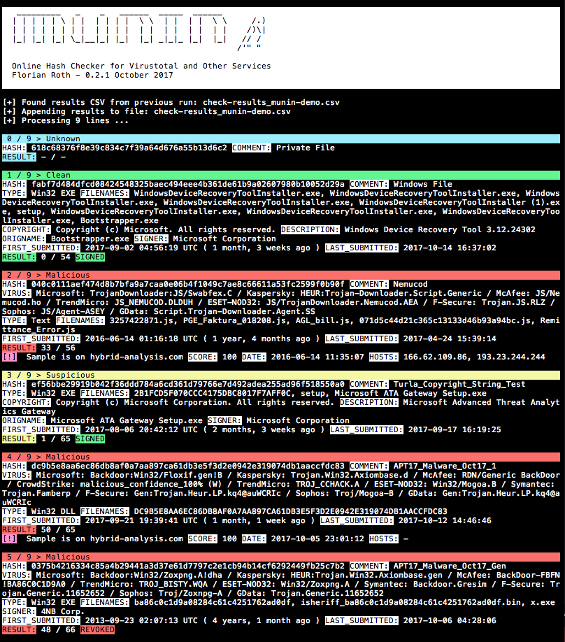 nunin est un utilitaire de vérification de hashs en ligne qui récupère des informations précieuses à partir de diverses sources en ligne.