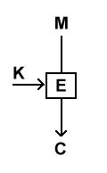 où K désigne la clé utilisée par l'algorithme, E désigne le cryptage en lui-même, M (ou m, mi) désigne le message en clair (c'est-à-dire un bloc) et C (ou c, ci) le chiffré résultant.
